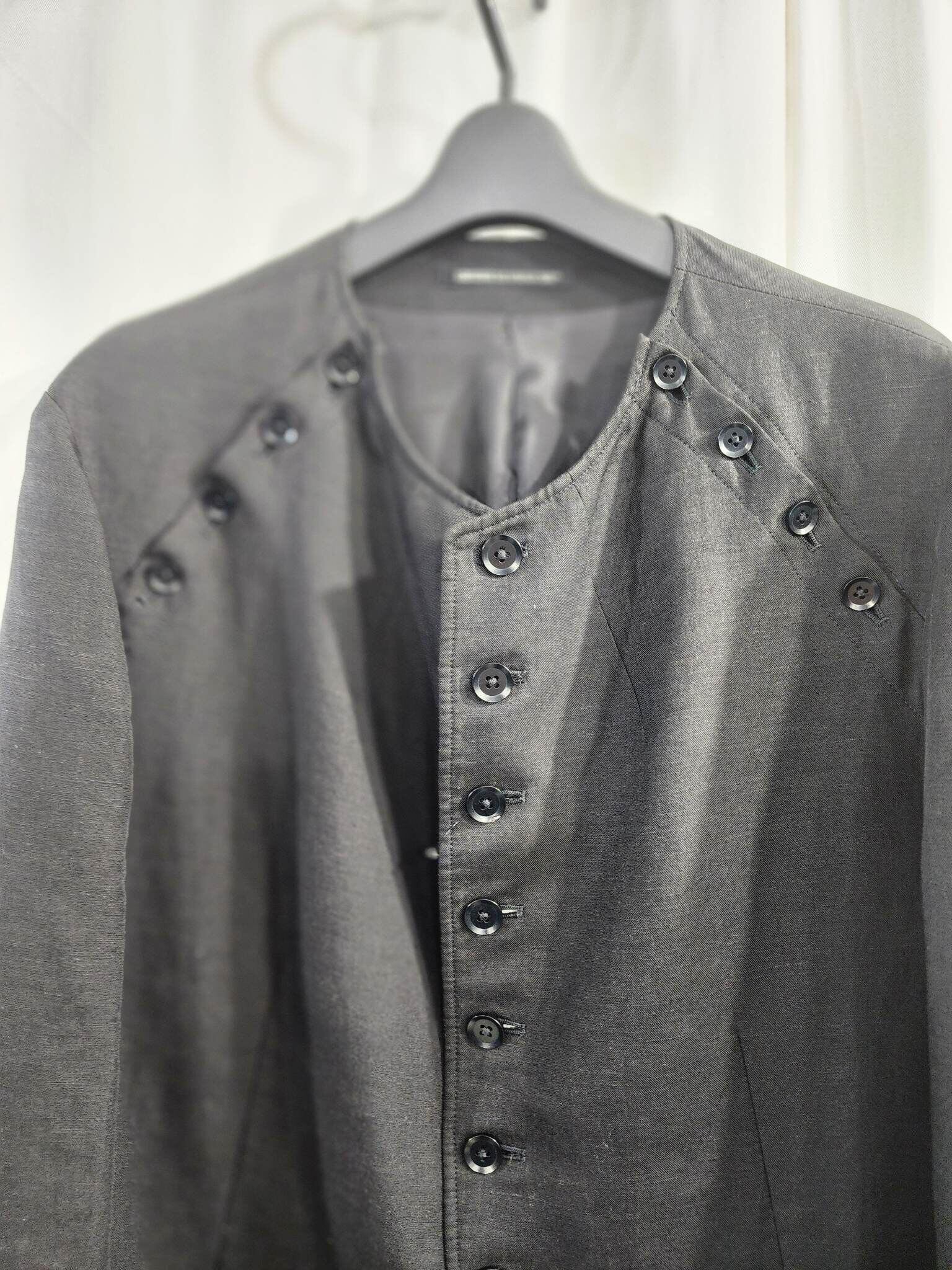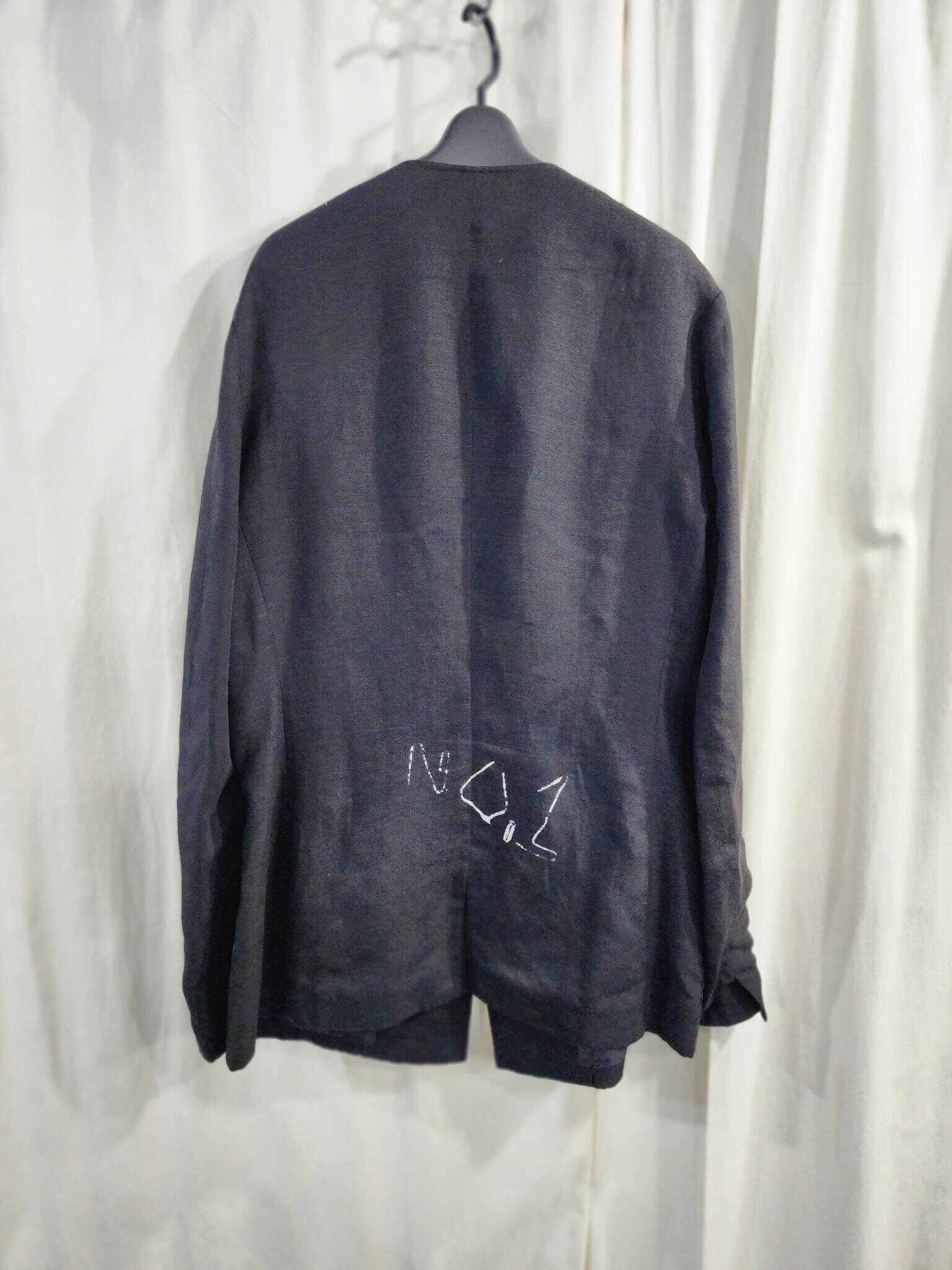 2015ss yohji yamamoto pour homme 黒 ヨウジロゴ入りフロッキージャケット (HO-J40-314)