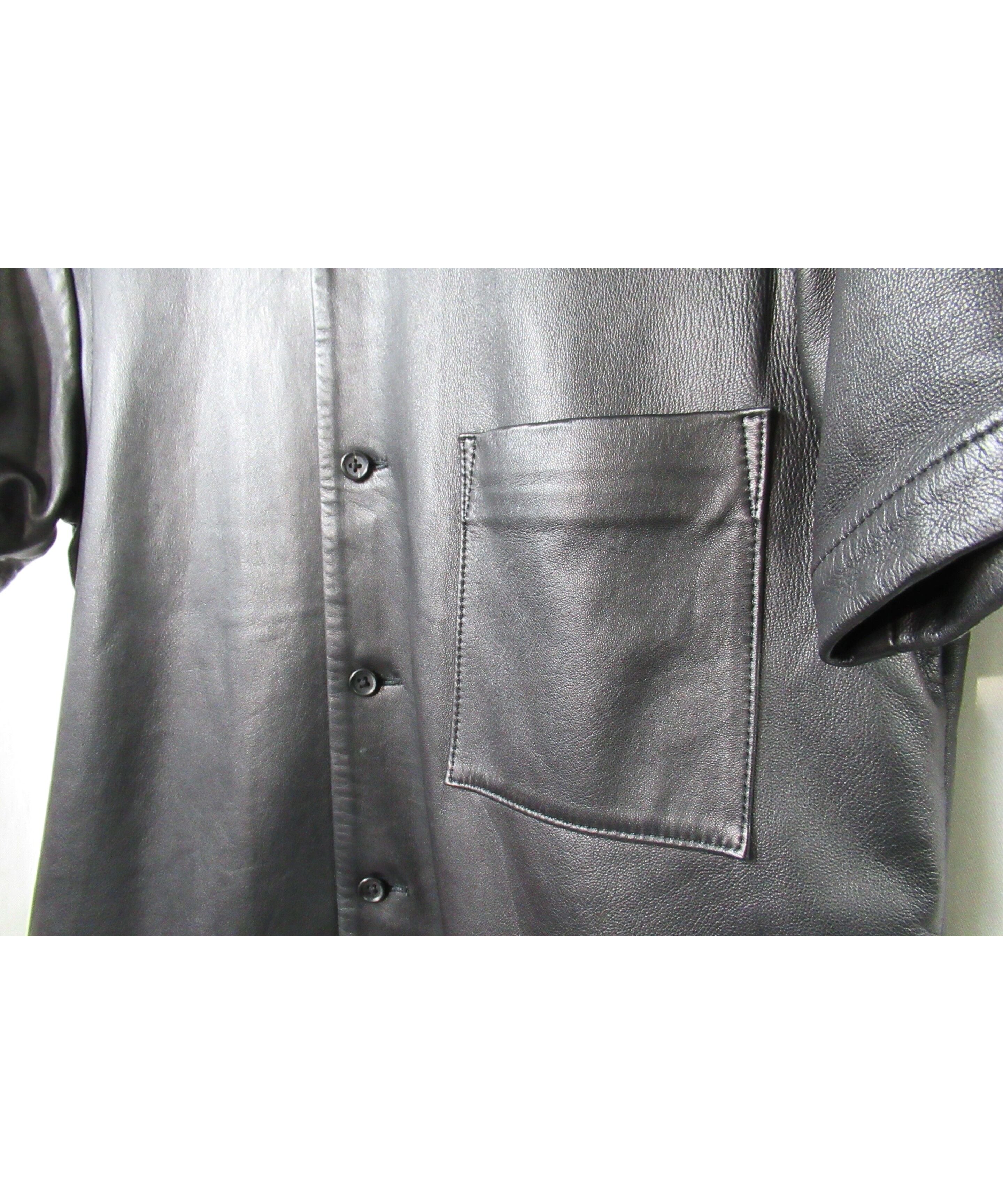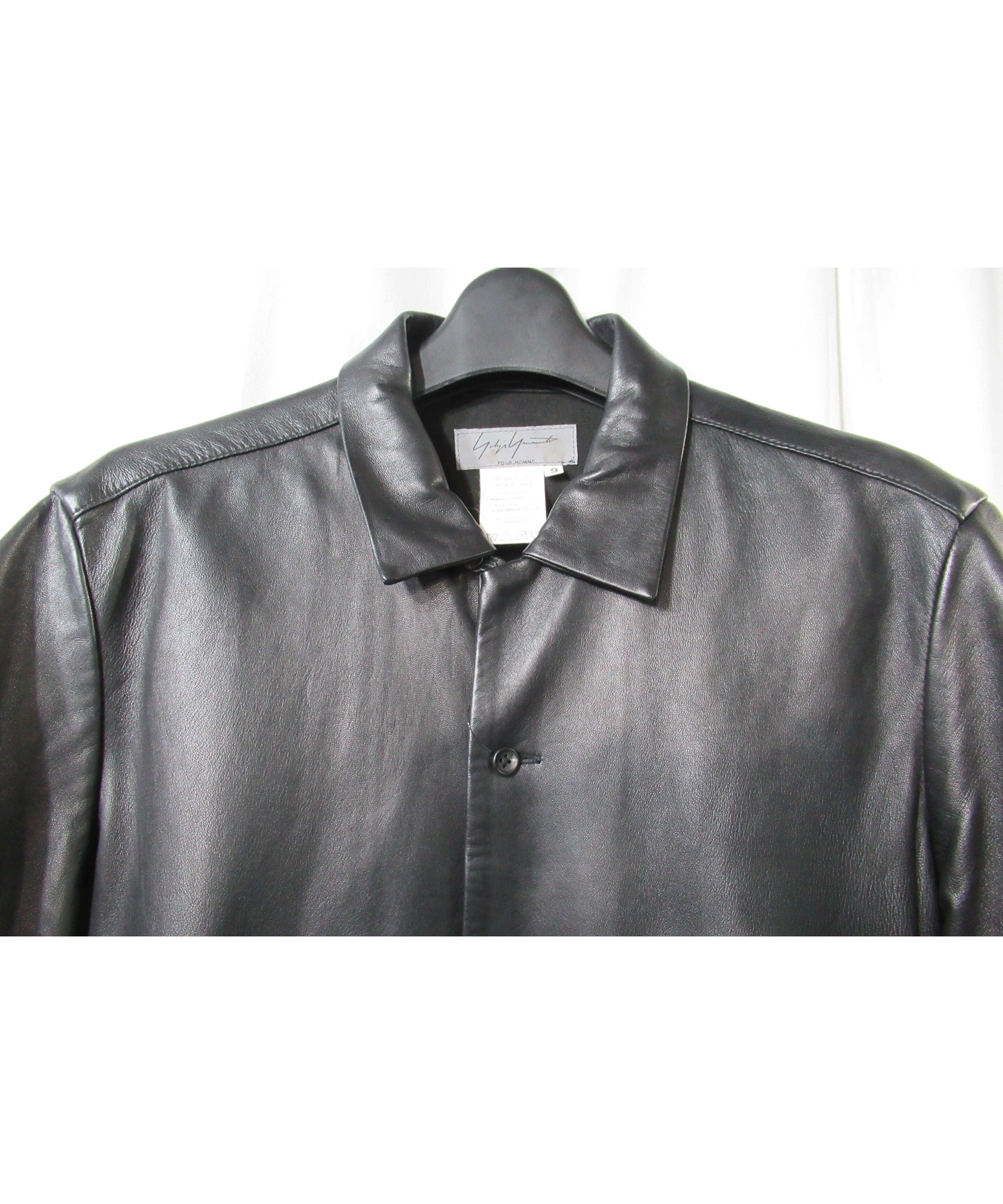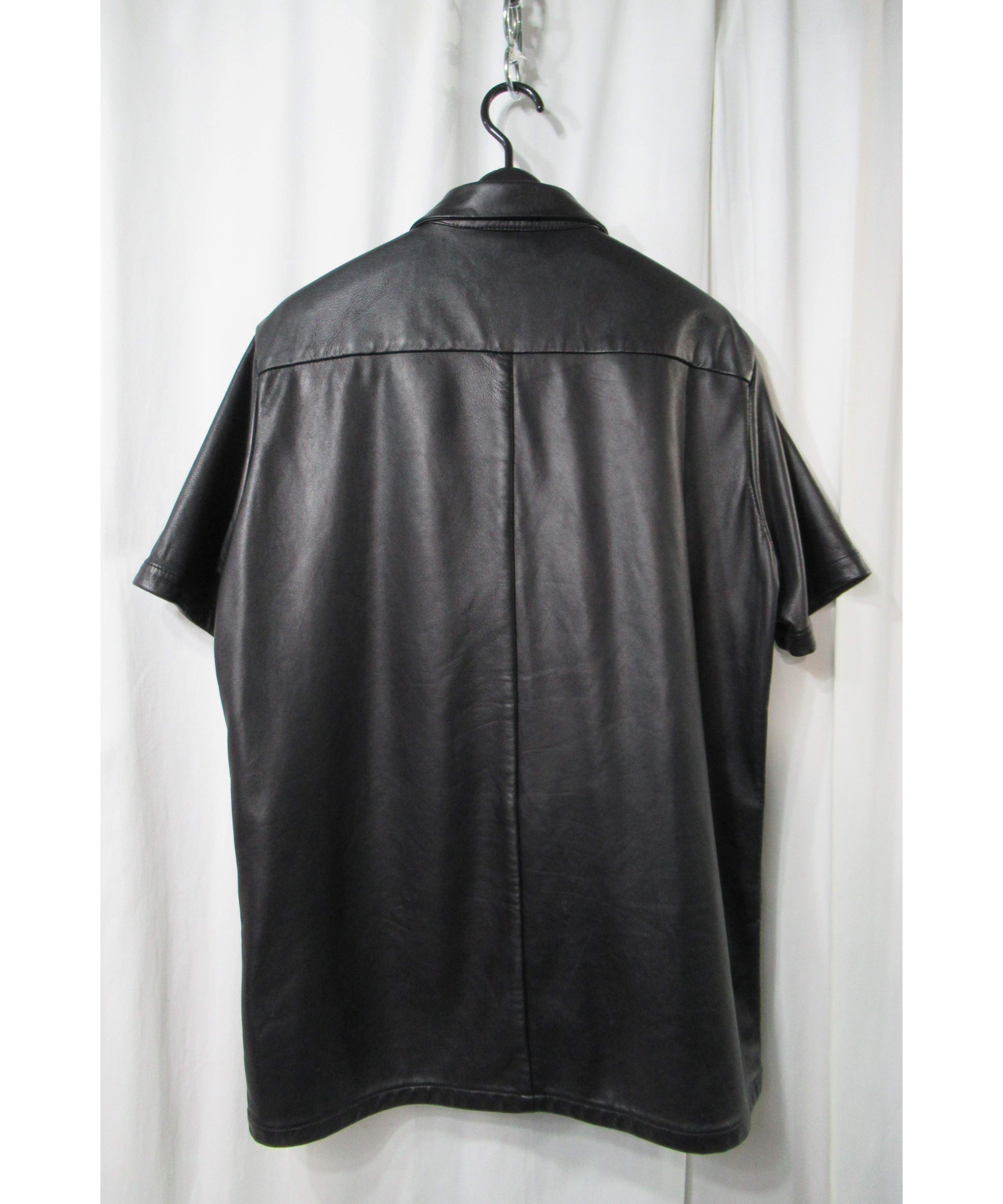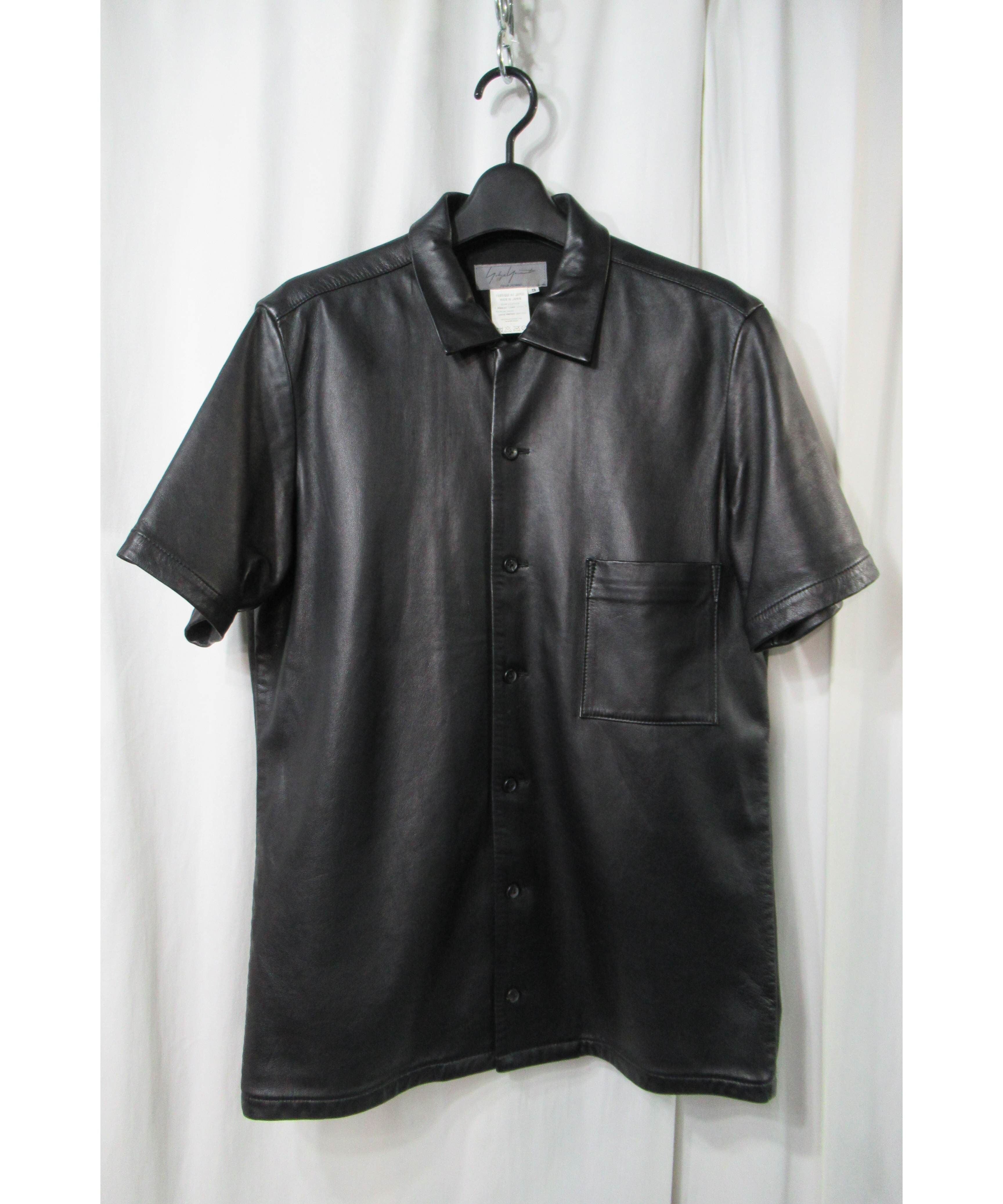 01aw yohji yamamoto pour homme レザー 半袖ブラウス(HX-B37-701)