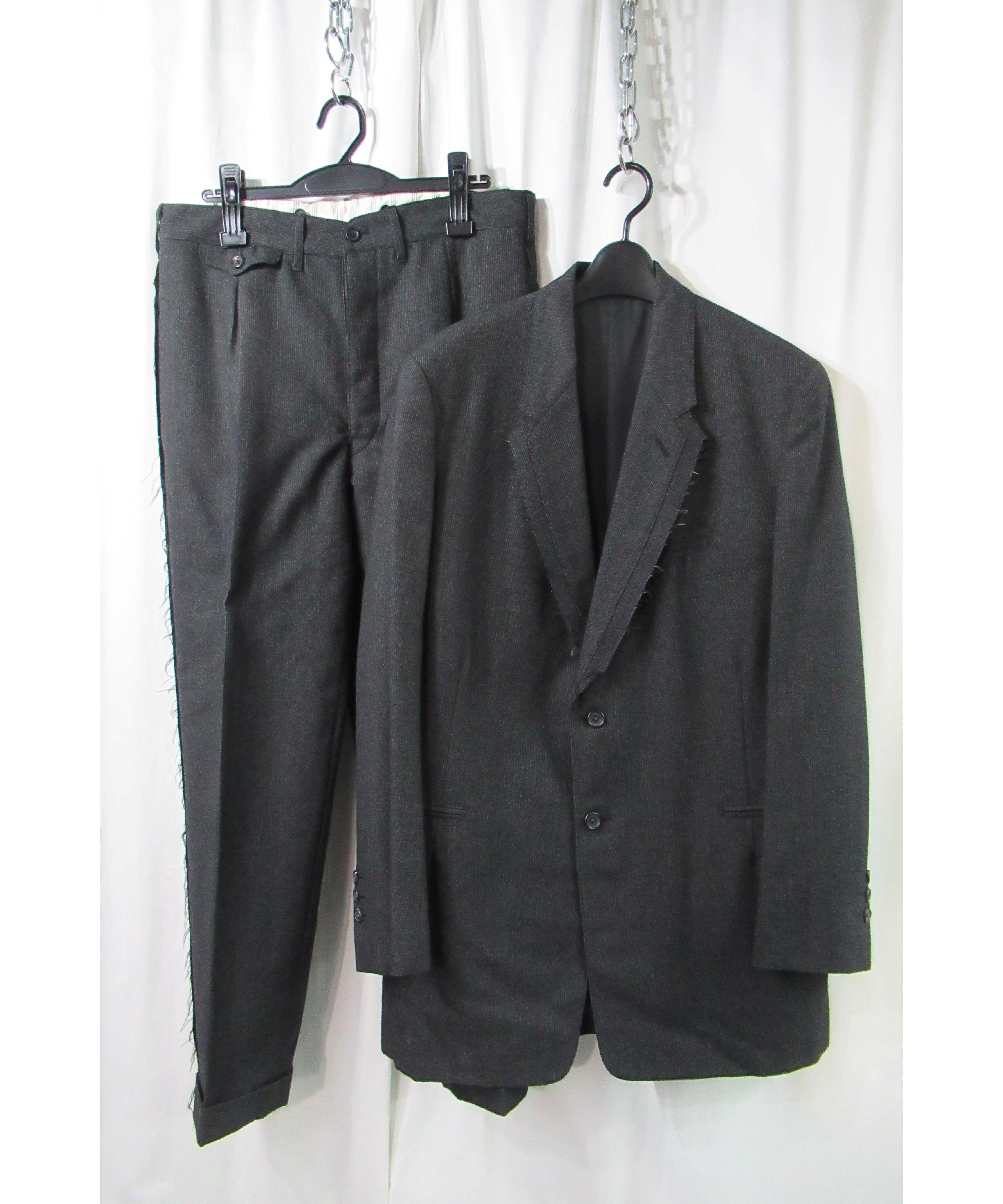 95aw yohji yamamoto pour homme vintage 鹿鳴館期 グレーストライプダメージ加工セットアップ(HE-J64-119)
