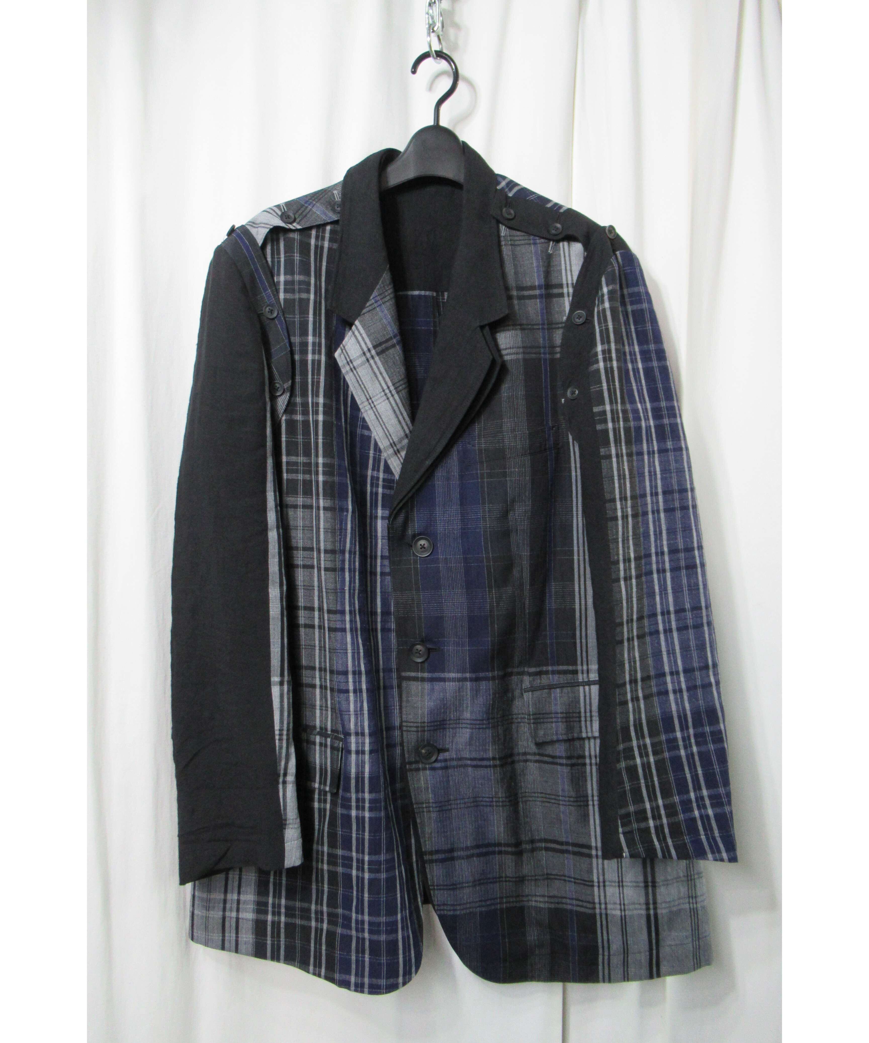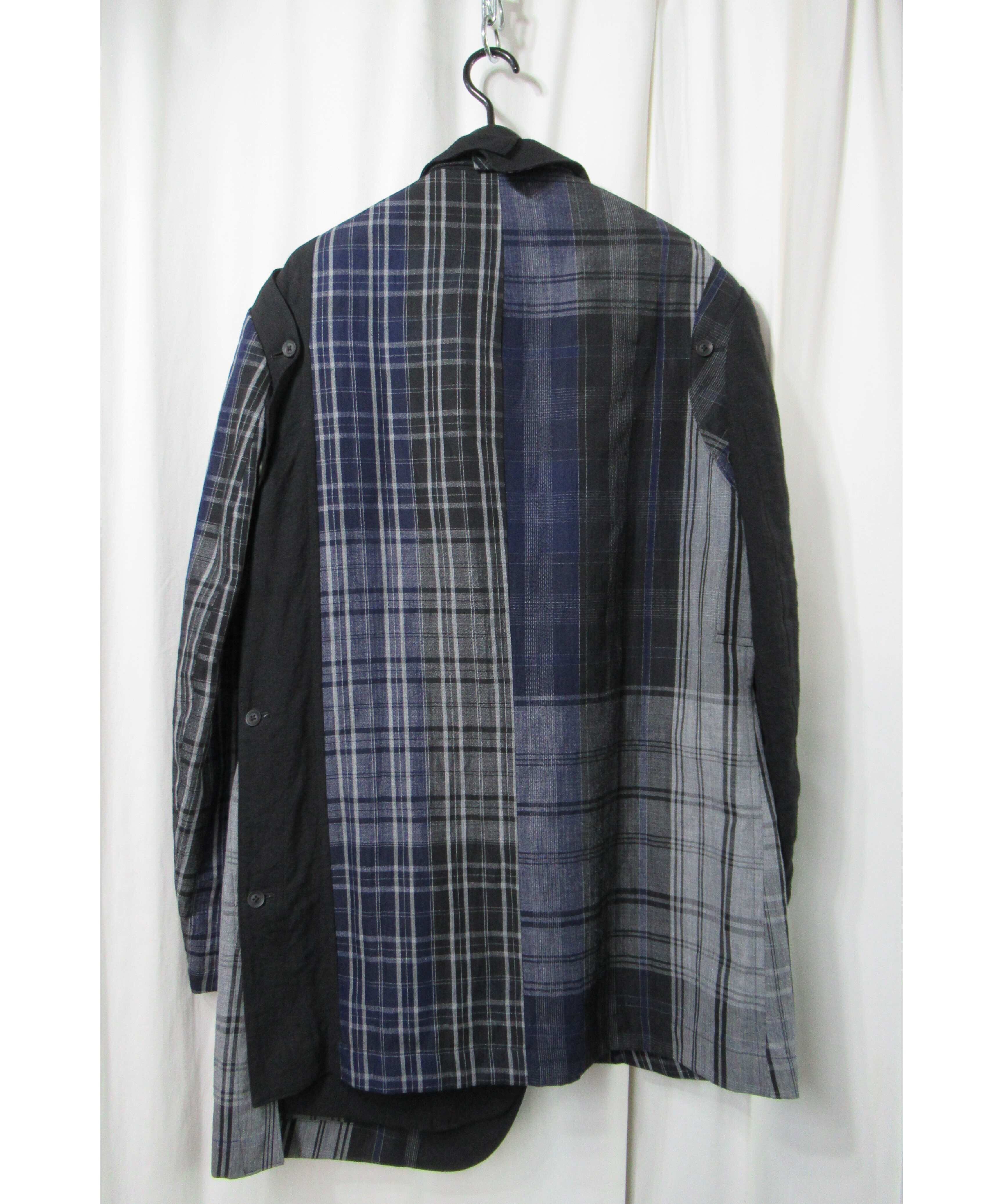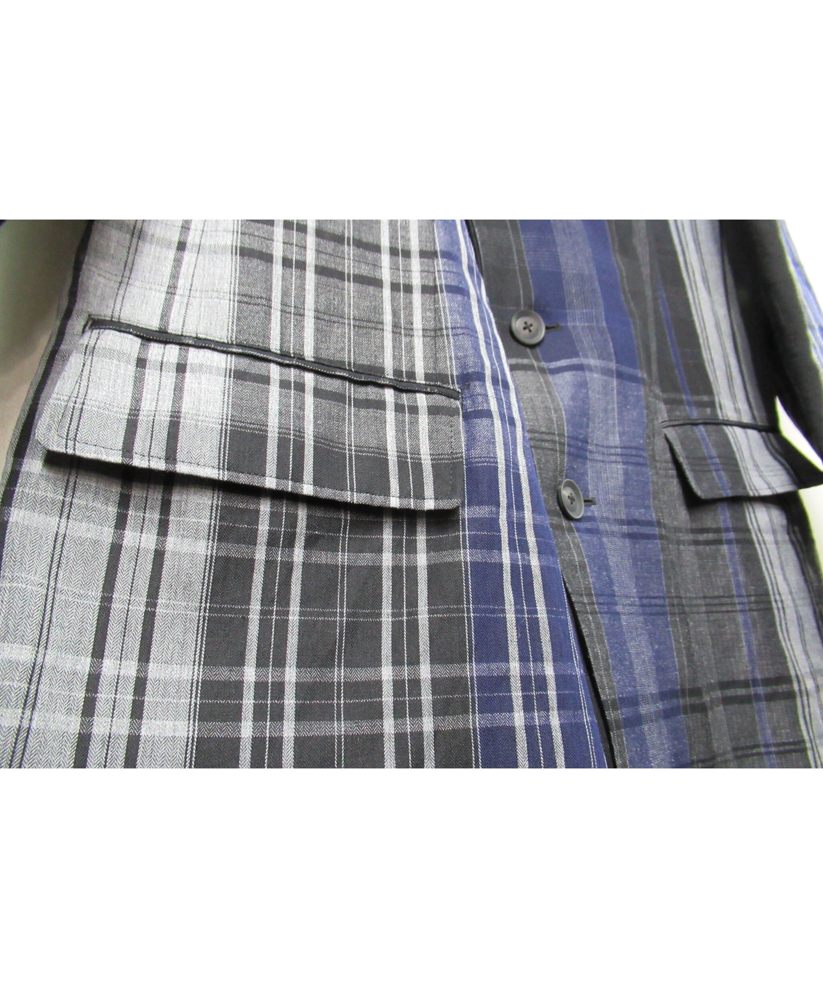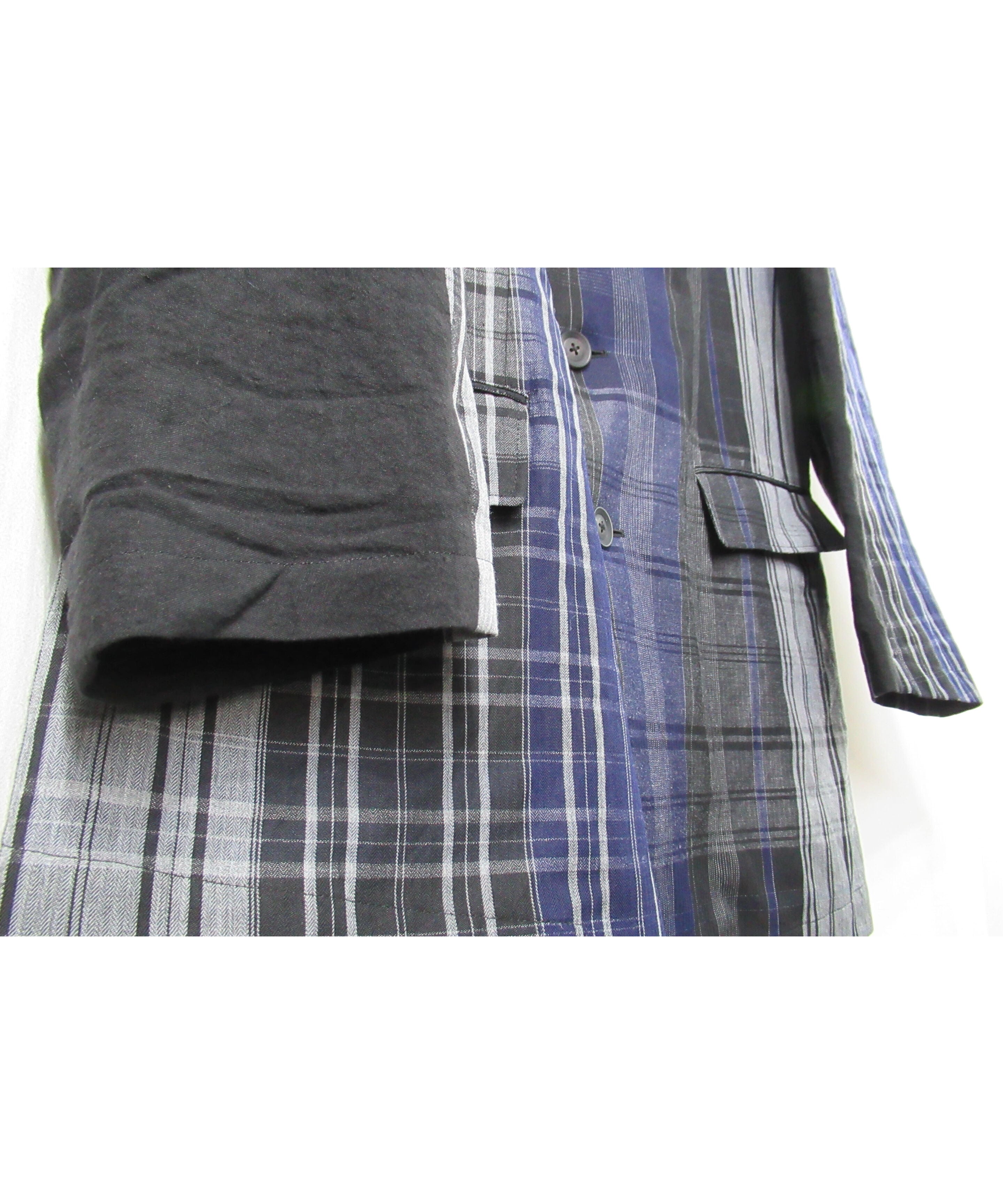 21ss yohji yamamoto pour homme 麻 チェック アシトメリーデザインジャケット(HD-J45-831)