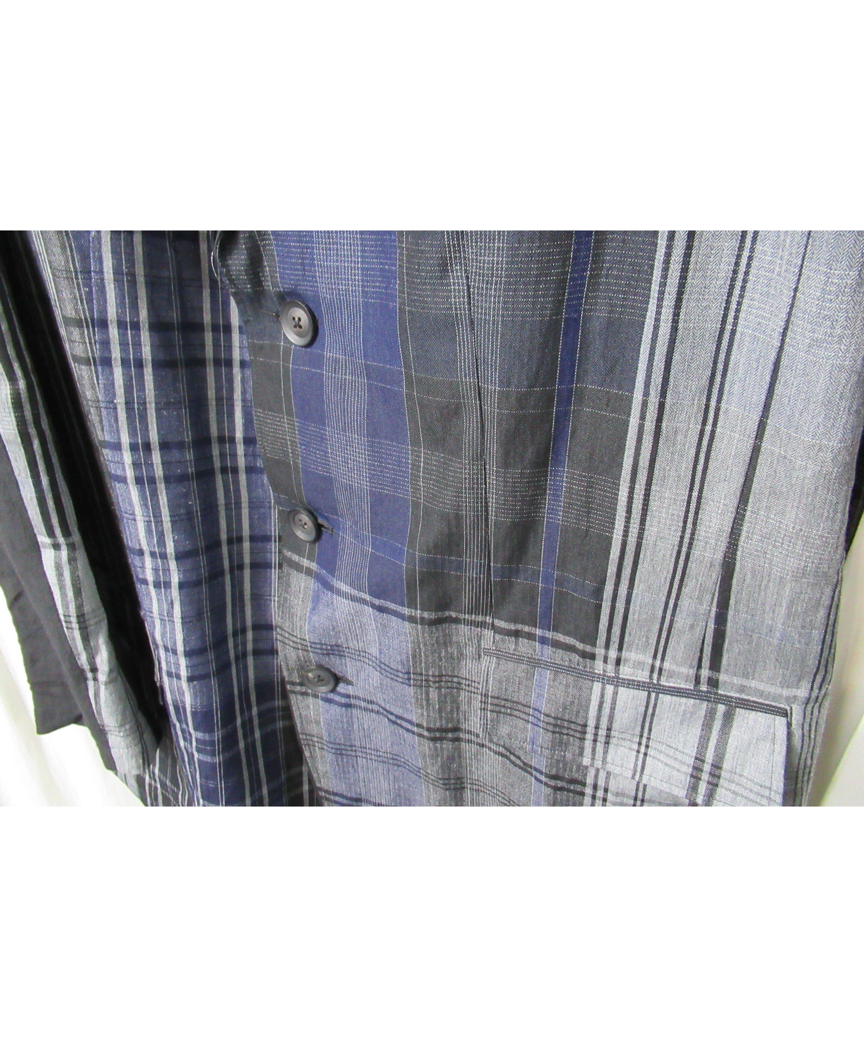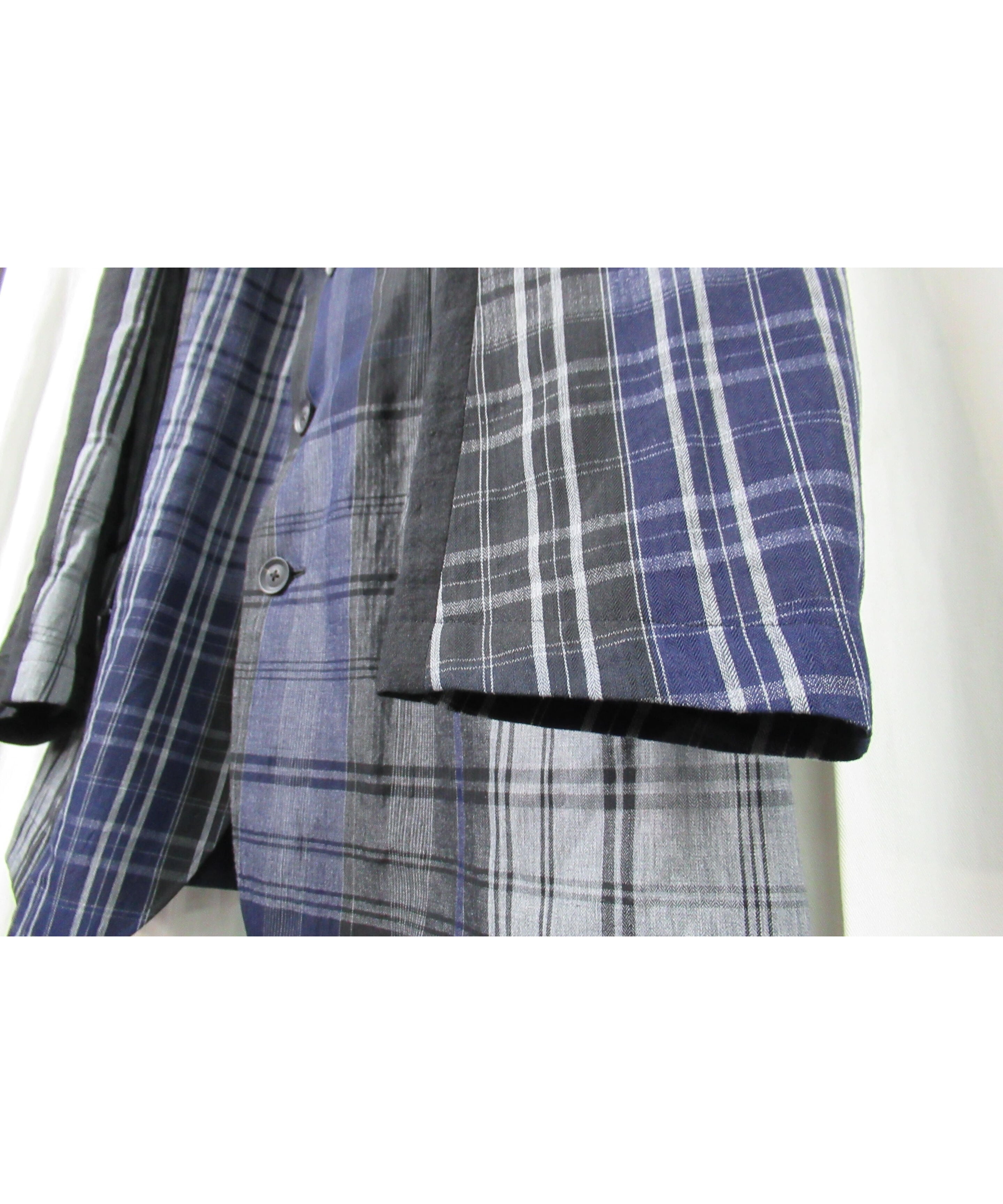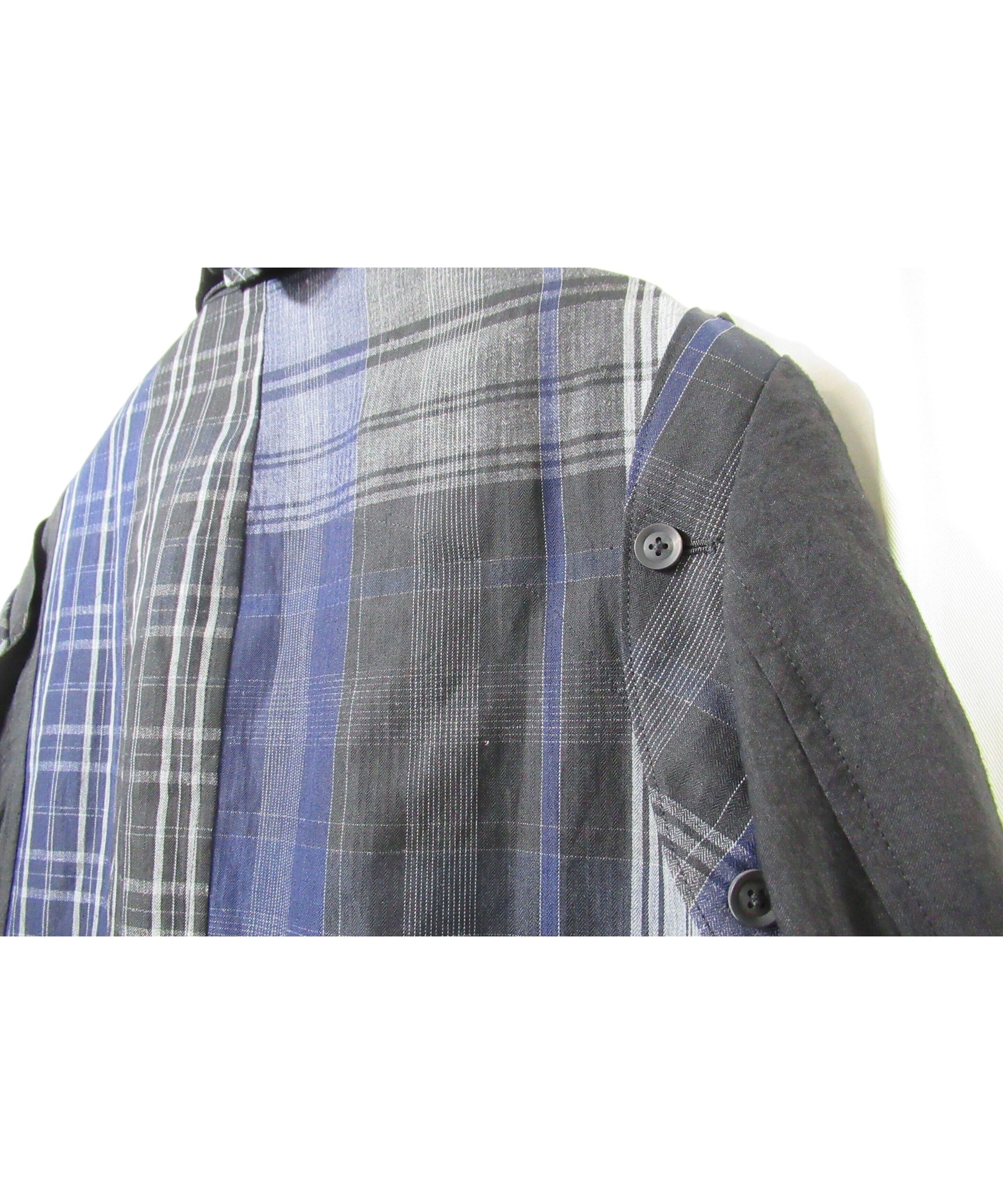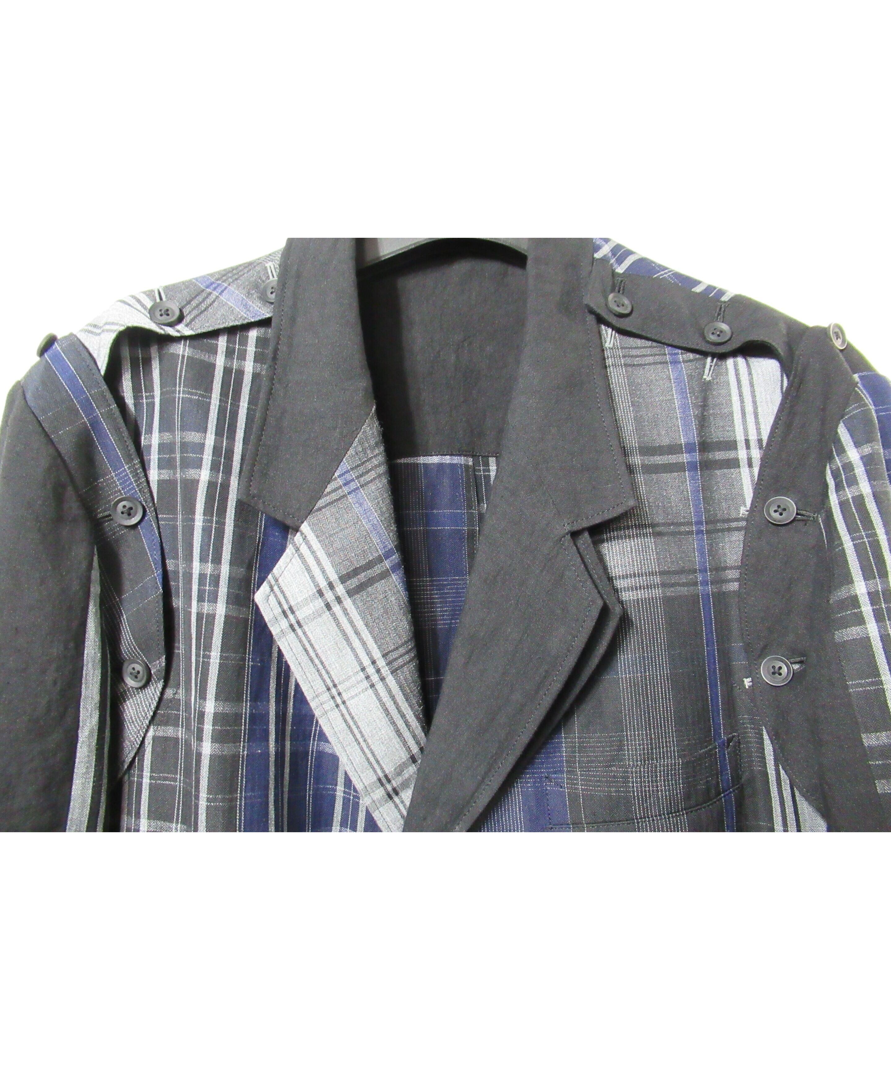 21ss yohji yamamoto pour homme 麻 チェック アシトメリーデザインジャケット(HD-J45-831)