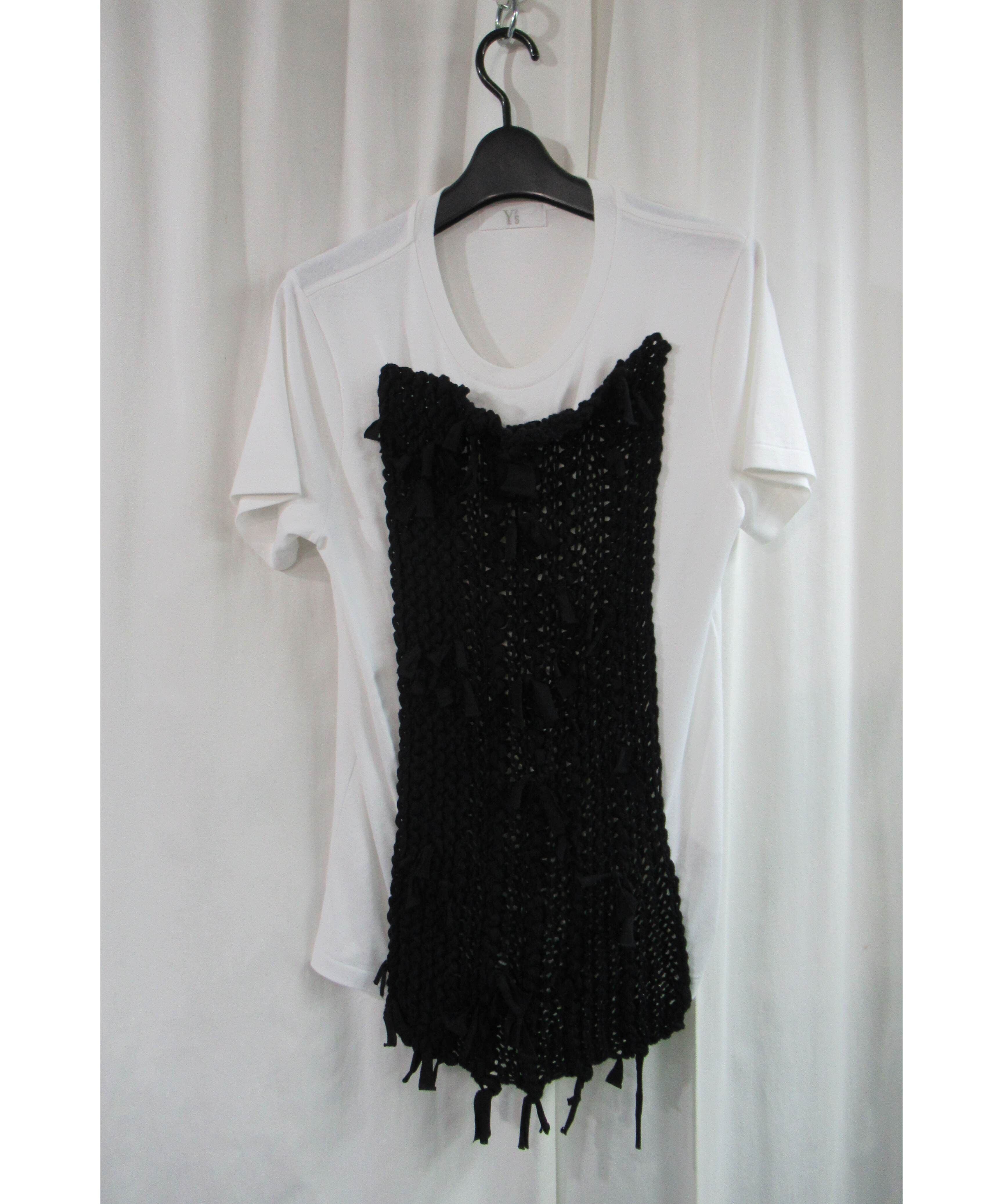 Y's yohji yamamoto フロントニットデザインコットン半袖カットソー(YM-K60-045)