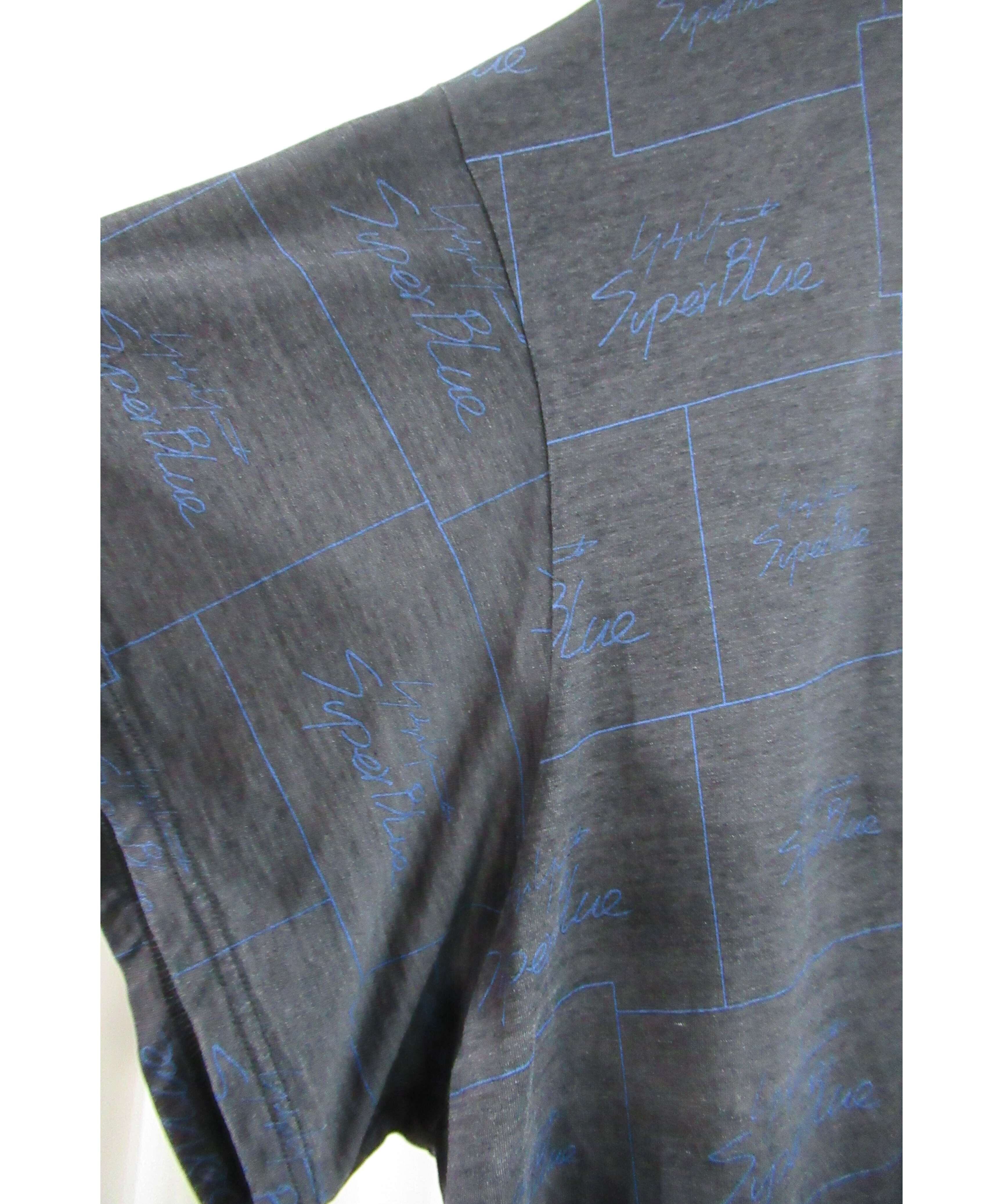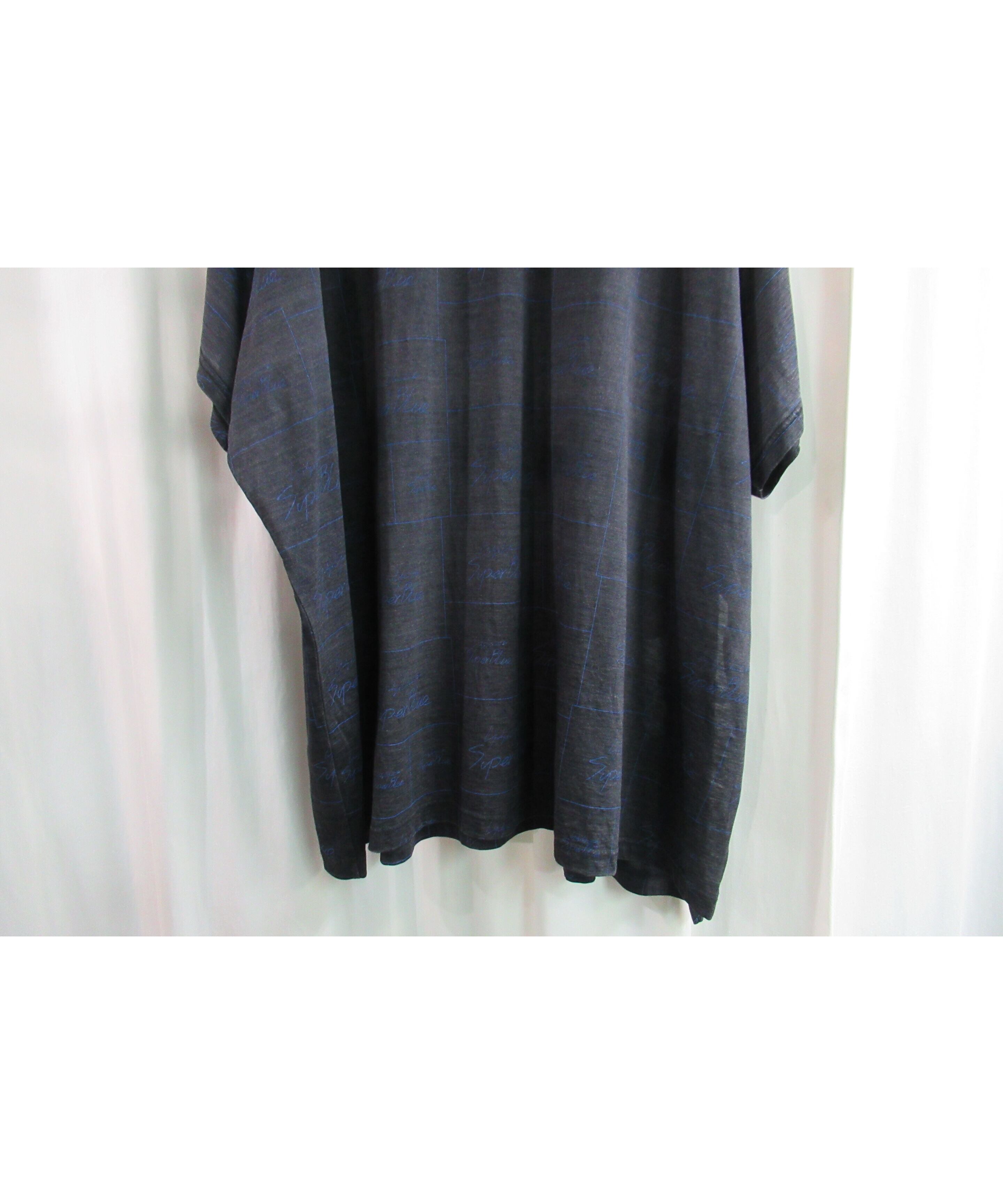 17aw yohji yamamoto Super Blue グレー インディゴ染め プリントカットソー NK-T83-095