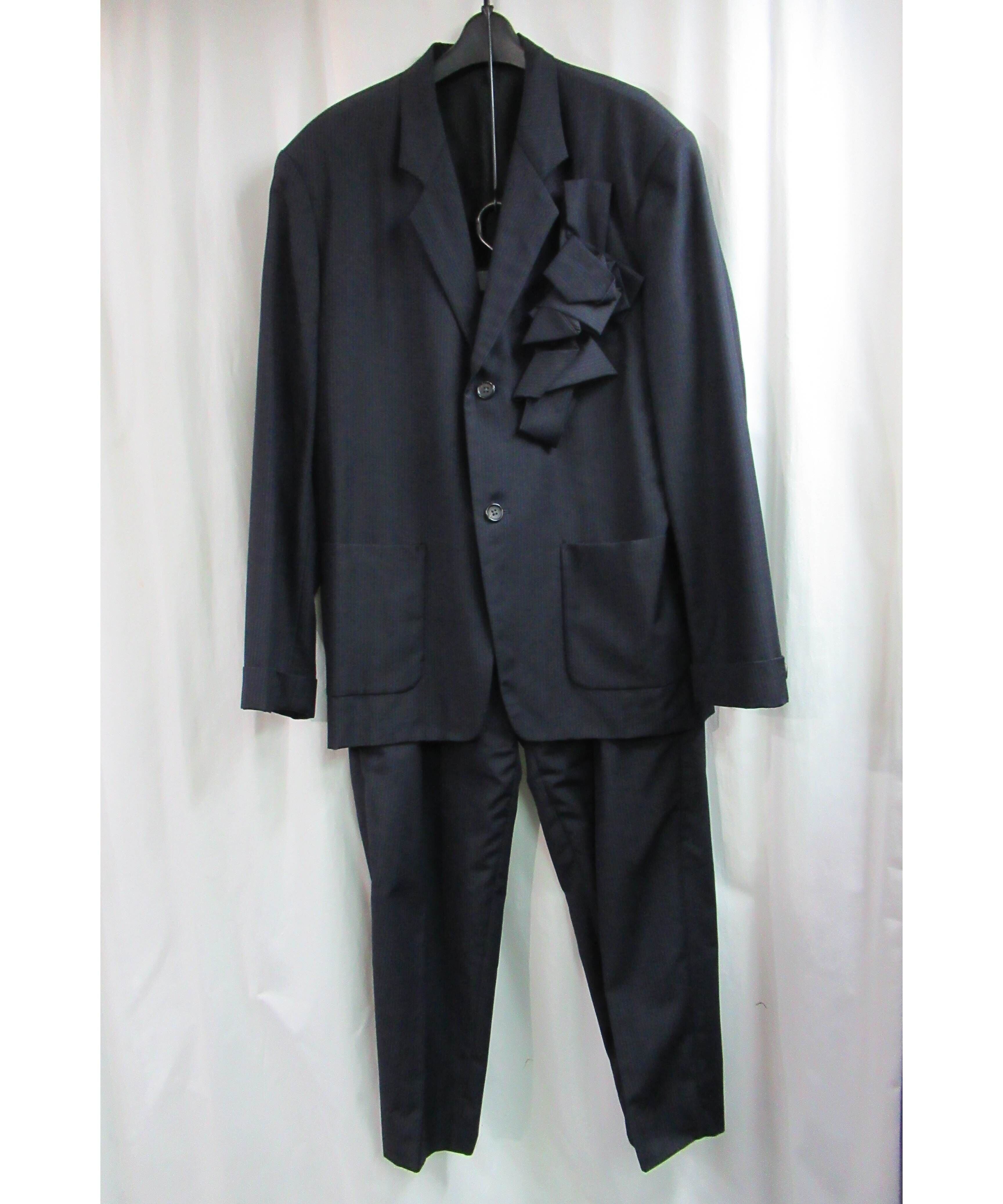1987AW yohji yamamoto pour homme vintage 紺 コサージュストライプセットアップ